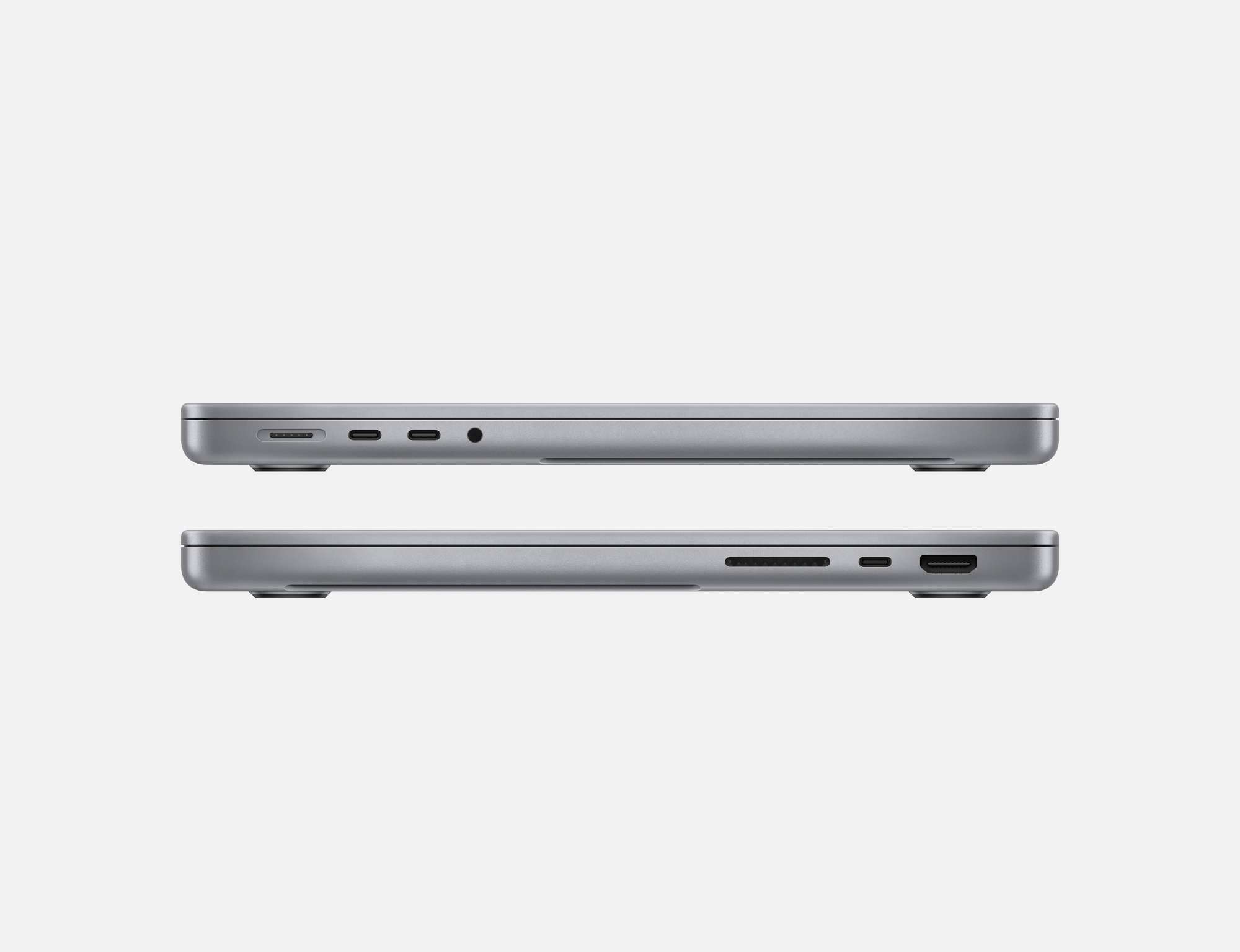 • Trois ports Thunderbolt 4, port HDMI, fente pour carte SDXC, prise casque, port MagSafe 3